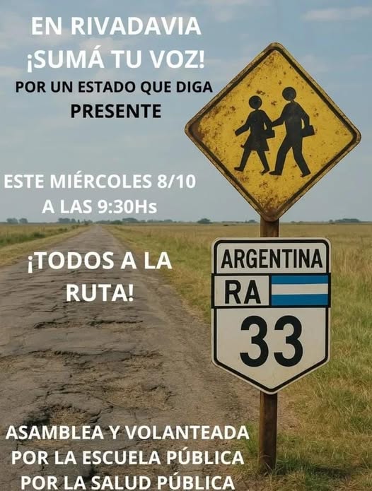 En la mañana del miércoles 8 de octubre, la intersección de la Ruta Nacional 33 y el acceso principal a la ciudad de América fue el escenario de una contundente movilización. La protesta fue organizada por los gremios docentes SUTEBA y FEB.