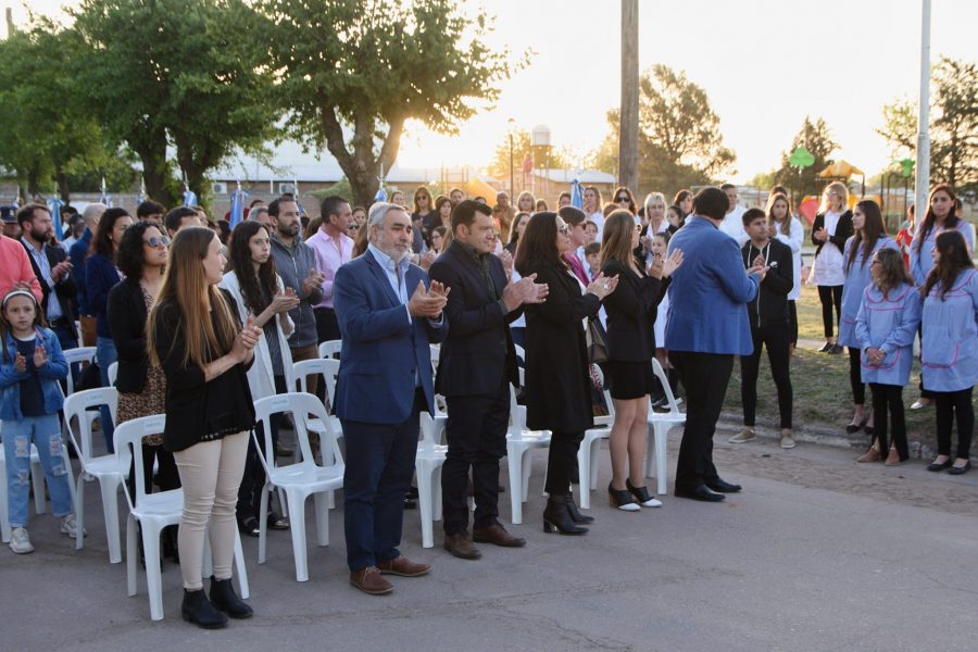 El acto reunió no sólo a vecinos y vecinas de la localidad anfitriona, sino también de los tres distritos que lindan el pueblo. Hubo entrega de reconocimientos del ámbito educativo a los nuevos profesionales y a las instituciones con sus correspondientes proyectos que participaron en la Feria de Educación, Artes, Ciencia y Tecnología 2022 y también se distinguió a estudiantes que participaron de Parlamento Juvenil del Mercosur; a los competidores, docentes y colaboradores que participaron de los Juegos Bonaerenses y la Copa Buenos Aires y a vecinos y vecinas que han tenido un papel protagónico por su aporte a la comunidad, además de entregarse una placa al anexo operativo local del Banco de la Provincia de Buenos Aires.