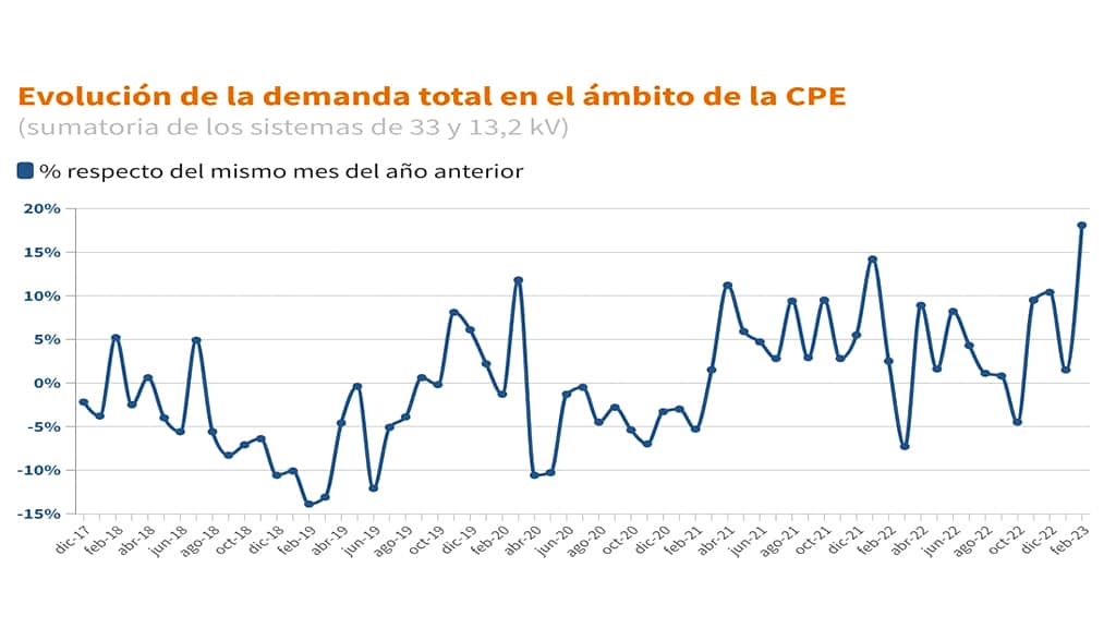 Durante el mes de febrero de 2023, motivado por la ola de calor que sufrió buena parte del país, se produjo en el ámbito de distribución de energía que atiende la CPE, un inédito aumento del 18 por ciento del consumo de electricidad, comparado con igual mes de 2022.